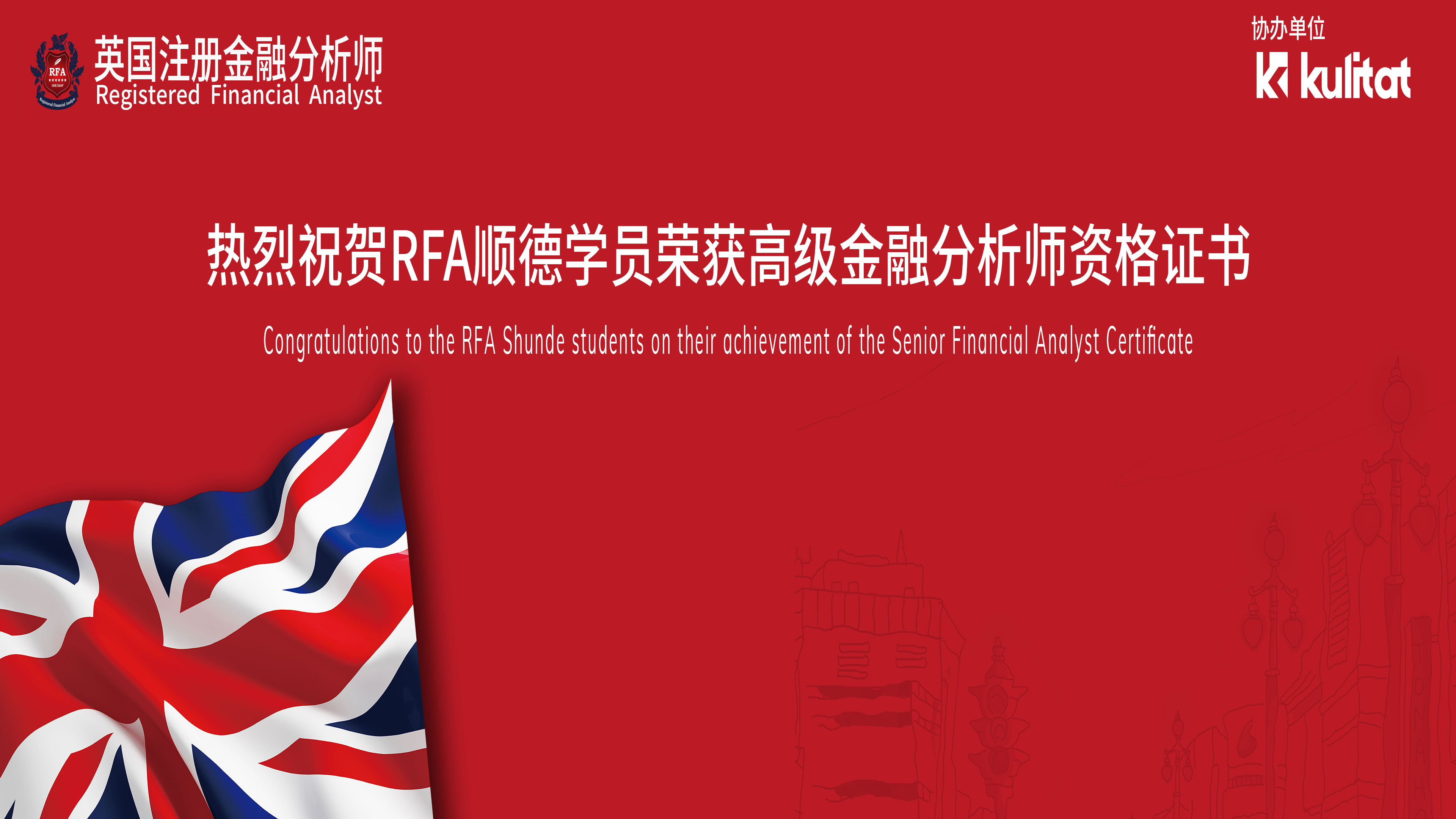 9月19日,RFA英國注冊金融分析師—順德首期學員頒證典禮在kulitat庫靈圖華南運營中心如期舉行。活動期間,庫靈圖中華區總裁李林鴻先生為現場學員嘉賓們致以了熱烈的歡迎和誠摯的問候,同時十分榮幸地邀請到了清華大學博士后、本科生導師——楊博士,為學員們頒發證書。 英國注冊金融分析師( Registered Fina}